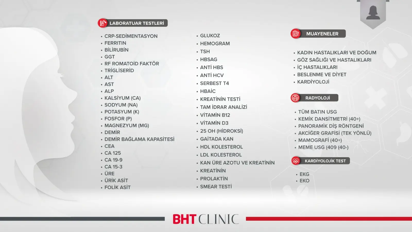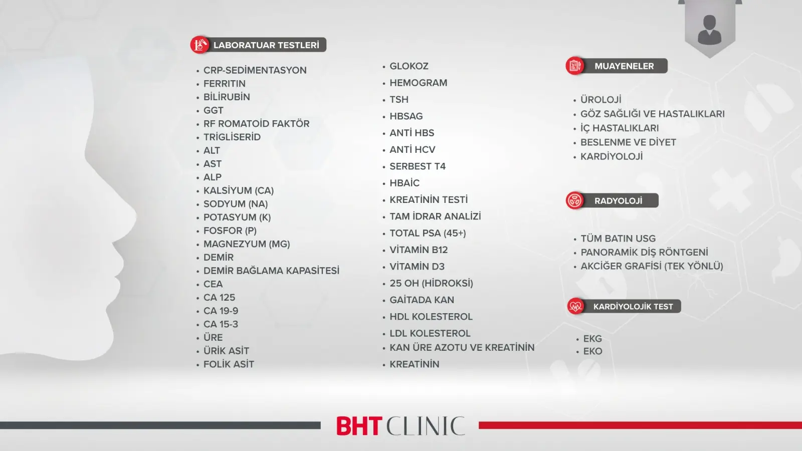BHT CLINIC İstanbul Tema Hastanesi’nin kişiye özel sunduğu Check up ve Sağlıklı Yaşam Programları ile sağlıklı bir geleceğin kapılarını aralayın.